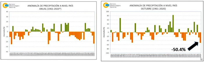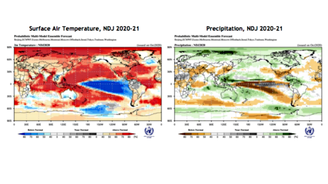 Se espera que el fenómeno, que hasta el presente había tenido características neutrales, se intensifique hasta llegar a condiciones moderadas e intensas. Podría incluir el primer trimestre de 2021. En el país seguirían ocurriendo precipitaciones inferiores a lo normal.