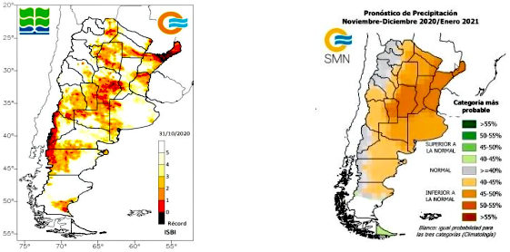 “Es probable que durante el actual episodio de la fase fría del ENOS —es decir, La Niña 2020— en gran parte del Cono Sur ocurran precipitaciones inferiores a lo normal. En la Argentina, según información que brinda el Servicio Meteorológico Nacional, este año 2020 se ha reportado como el año más seco desde 1961, mientras que el mes de octubre resultó el más seco históricamente desde el ‘61”, comentó Veliz.