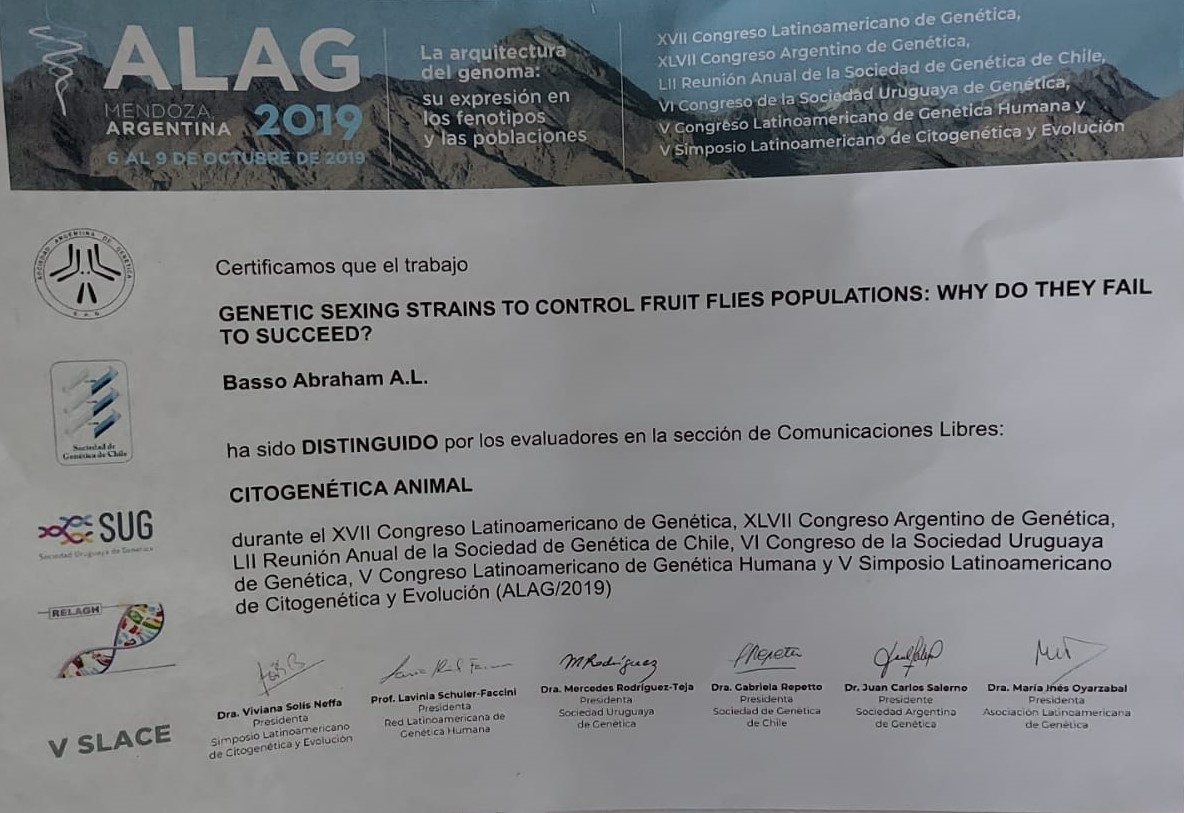 “Otro resultado clave del trabajo es que para establecer los genotipos a partir de los cuales producir las moscas macho es indispensable realizar estudios ‘de interacción genotipo x ambiente’. Esto implica determinar cómo los distintos ambientes naturales pueden modificar la genética de ambas especies, la del Mediterráneo y la sudamericana”. Basso añadió que es clave determinar los genotipos más frecuentes en cada población geográfica para usarlos en desarrollar los machos estériles para cada población.