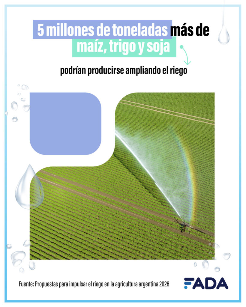 Estos datos y proyecciones forman parte del informe de FADA: “Propuestas para impulsar el riego en la agricultura argentina” con resultados prometedores.