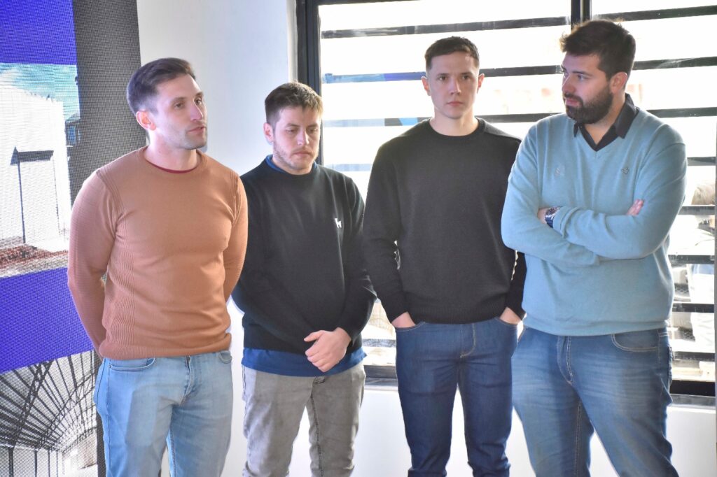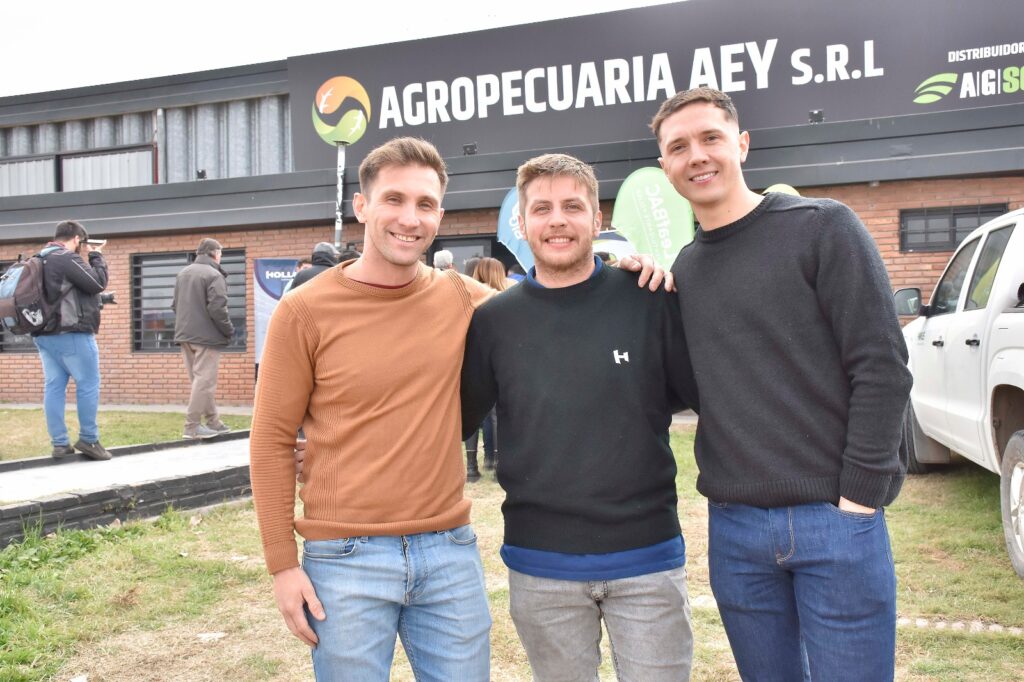 Los hermanos Andrés, Nicolás y Tomás Hollman y el directivo Néstor Fornado, presentaron las estructuras orientadas al agro, como depósitos, galpones y naves industriales, que se comercializan desde este nuevo punto de ventas.
