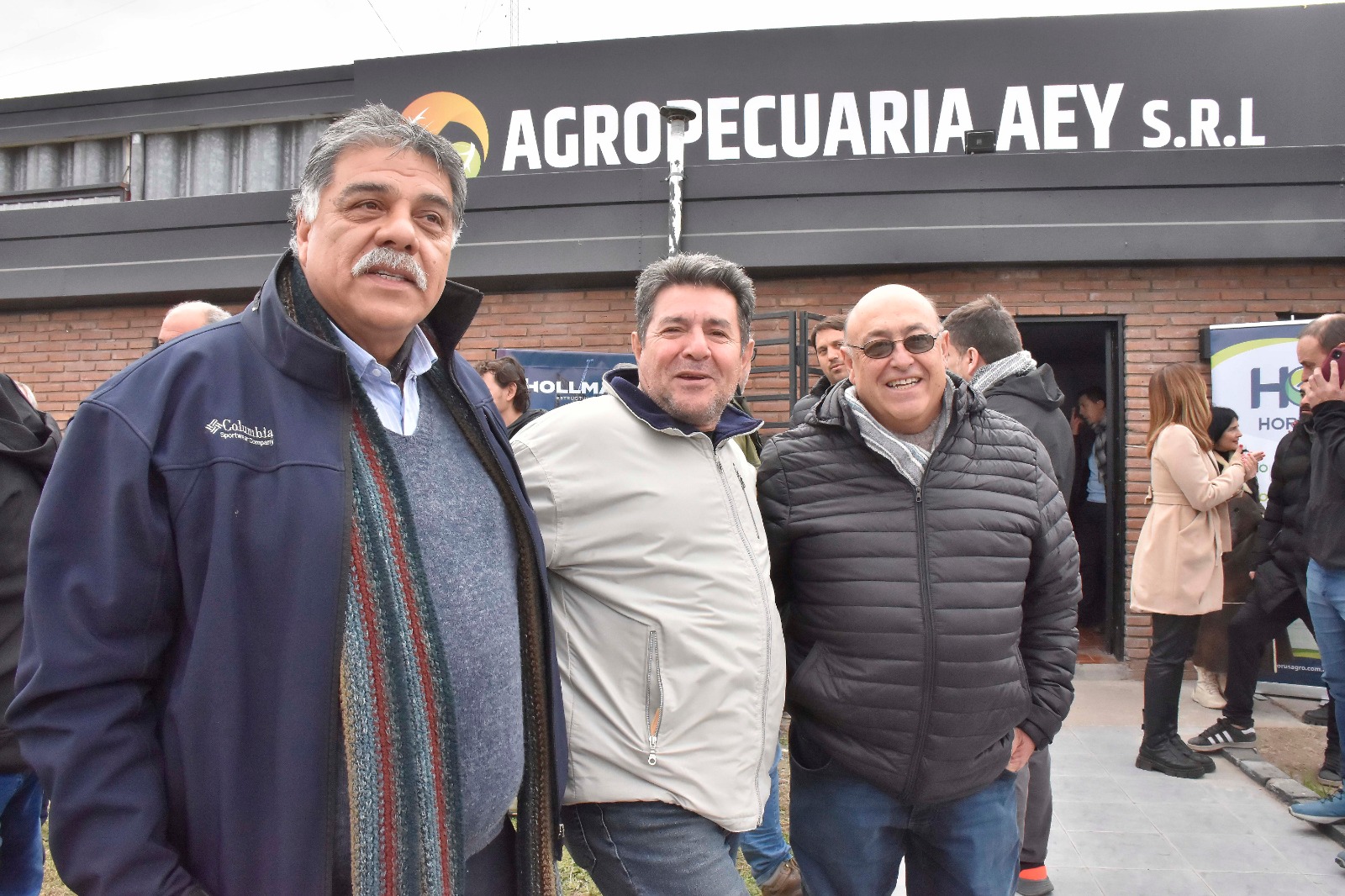Los hermanos Andrés, Nicolás y Tomás Hollman y el directivo Néstor Fornado, presentaron las estructuras orientadas al agro, como depósitos, galpones y naves industriales, que se comercializan desde este nuevo punto de ventas.