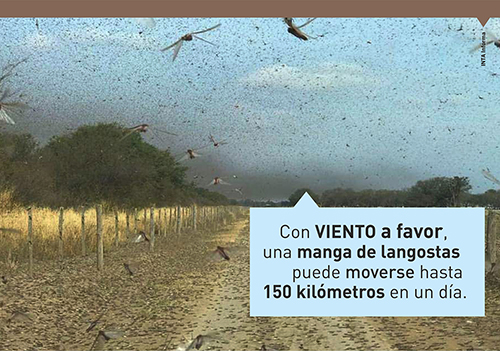 En la Argentina y, sobre todo en el NOA, la langosta sudamericana (Schistocerca cancellata Serville) no es una plaga novedosa: los primeros registros establecen que afectó a la agricultura en la provincia de Buenos Aires, alrededor del 1500. “Es un problema histórico”, afirmó Héctor Medina –coordinador del Programa Nacional de Langostas y Tucuras del Senasa– y alertó: “Hace más de 60 años que no veíamos una explosión poblacional como la de ahora, en la región”.