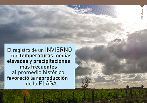 Hay más de 400.000 kilómetros cuadrados vigilados por el Senasa. Por el nivel de dispersión territorial que tiene la plaga, declararon emergencia fitosanitaria hasta agosto de 2019. Técnicos del INTA recomiendan control permanente de lotes.
