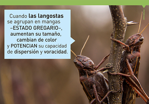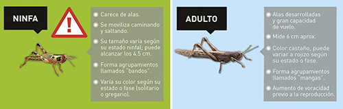 Las langostas pertenecen al orden de insectos ortópteros, poseen patas posteriores largas para saltar y un aparato bucal masticador potente que le permite alimentarse de hojas y de otros órganos de plantas. Asimismo, se caracterizan por su gran capacidad migratoria y alta tasa reproductiva, lo que les confiere el potencial para convertirse en plagas devastadoras y afectar la vegetación de grandes extensiones de terreno.