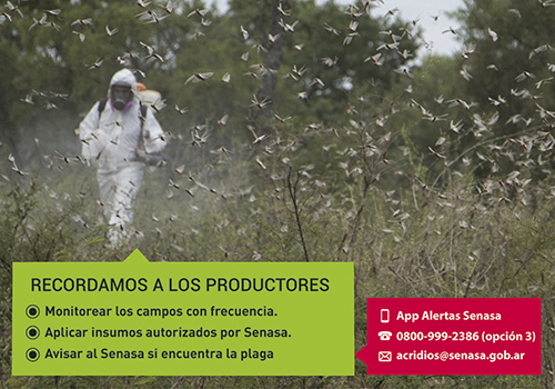 Como es un problema que depende de múltiples factores, el comité interinstitucional de crisis por emergencia de la langosta comandado por el Senasa advierte sobre la necesidad de realizar el monitoreo permanente de los lotes y denunciar la presencia de langostas lo antes posible a los organismos involucrados.