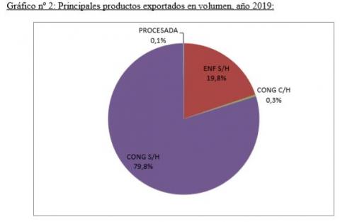 El volumen exportado mensual promedio del año 2019 se ubica en 50,2 mil toneladas res con hueso, que resulta moderadamente superior, (+9%), al volumen promedio mensual del año 2018, que había resultado de 46,0 mil toneladas res con hueso.