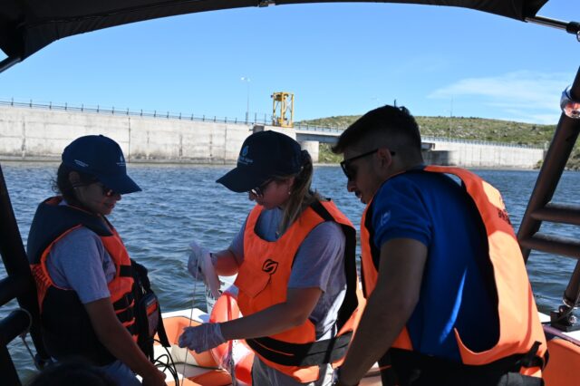 Técnicos de San Luis Agua tomaron muestras para realizar estudios ictiológicos y limnológicos en distintos puntos del espejo ubicado en el departamento Chacabuco.