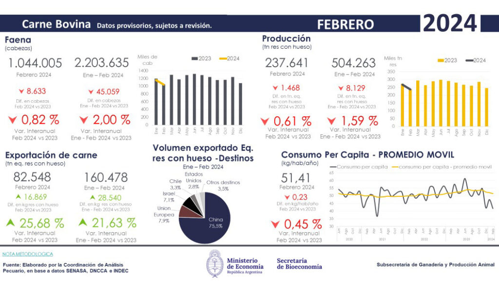 El acumulado del bimestre enero-febrero de 2024 también ha marcado un récord, con ventas que alcanzan las 160.000 toneladas. Estos números confirman una tendencia de crecimiento sostenido en las exportaciones de carne vacuna, impulsada por un cambio de política exportadora implementado por el Gobierno Nacional.