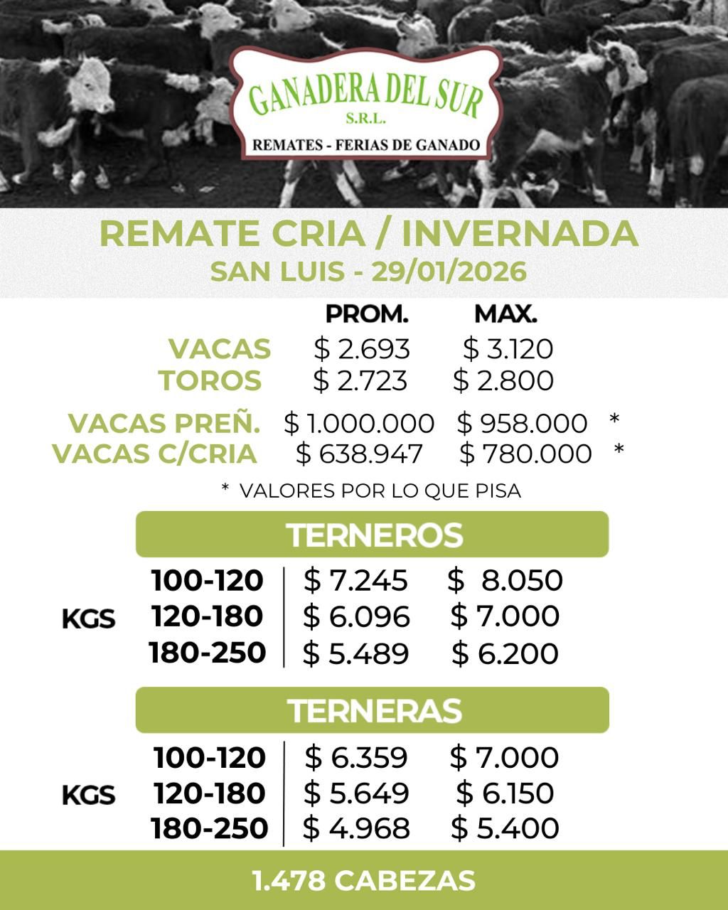 El primer remate del año de Ganadera del Sur S.R.L. en San Luis dejó una señal contundente para el mercado: los terneros livianos volvieron a destacarse con valores excepcionalmente altos, en una jornada que, además, sorprendió por su inusual nivel de concurrencia para un inicio de calendario.