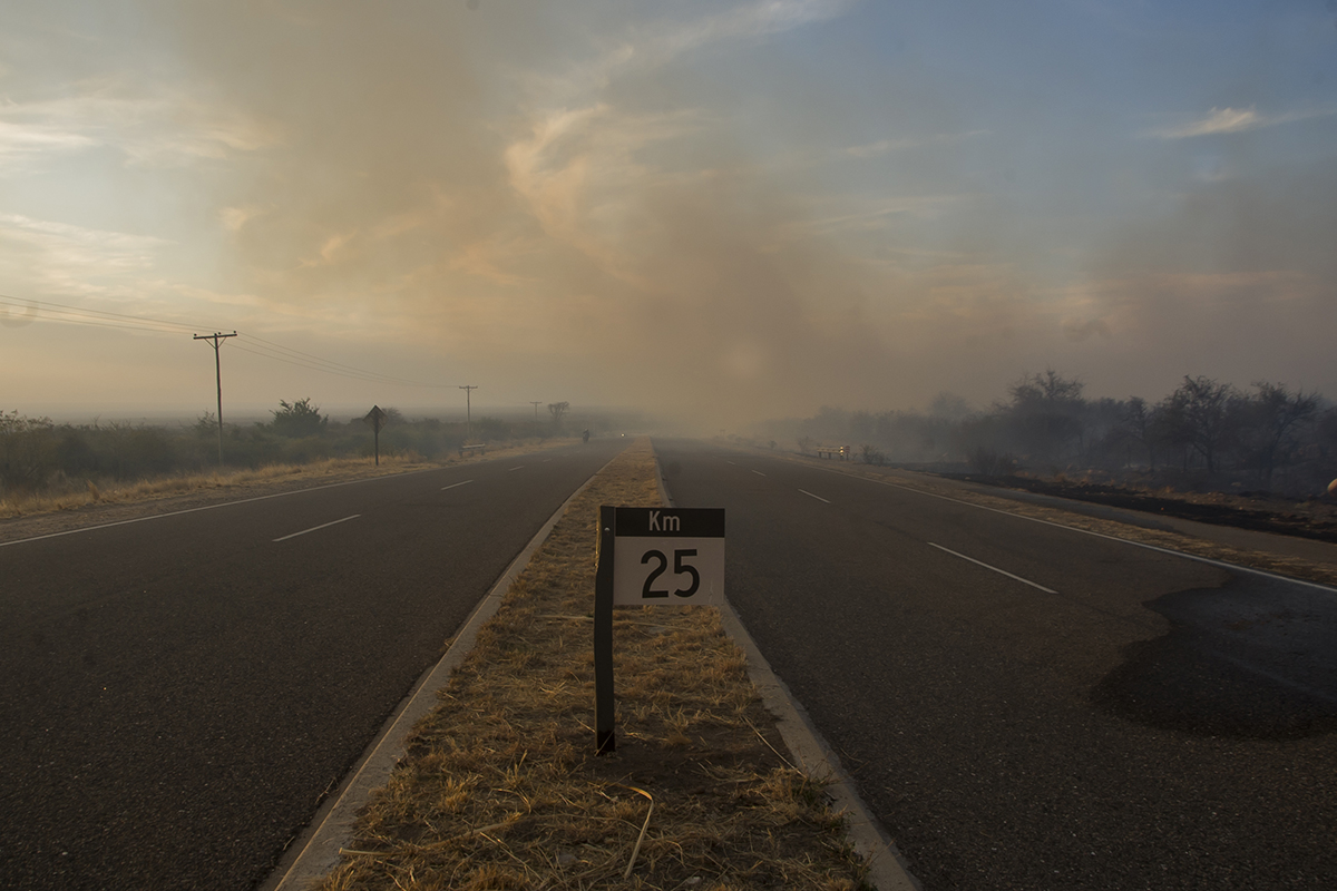 Bomberos y brigadistas continúan trabajando para controlar un incendio al pie de las Sierras Centrales