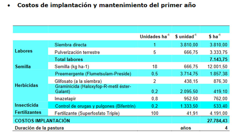 Cabe señalar que este análisis económico es estimativo y se basa en una situación productiva particular promedio, teniendo en cuenta sólo los costos generados por la incorporación del cultivo de alfalfa y no considerando los gastos de estructura de las explotaciones, cuya existencia se asume independientemente del tipo de cultivo y de la tecnología aplicada.