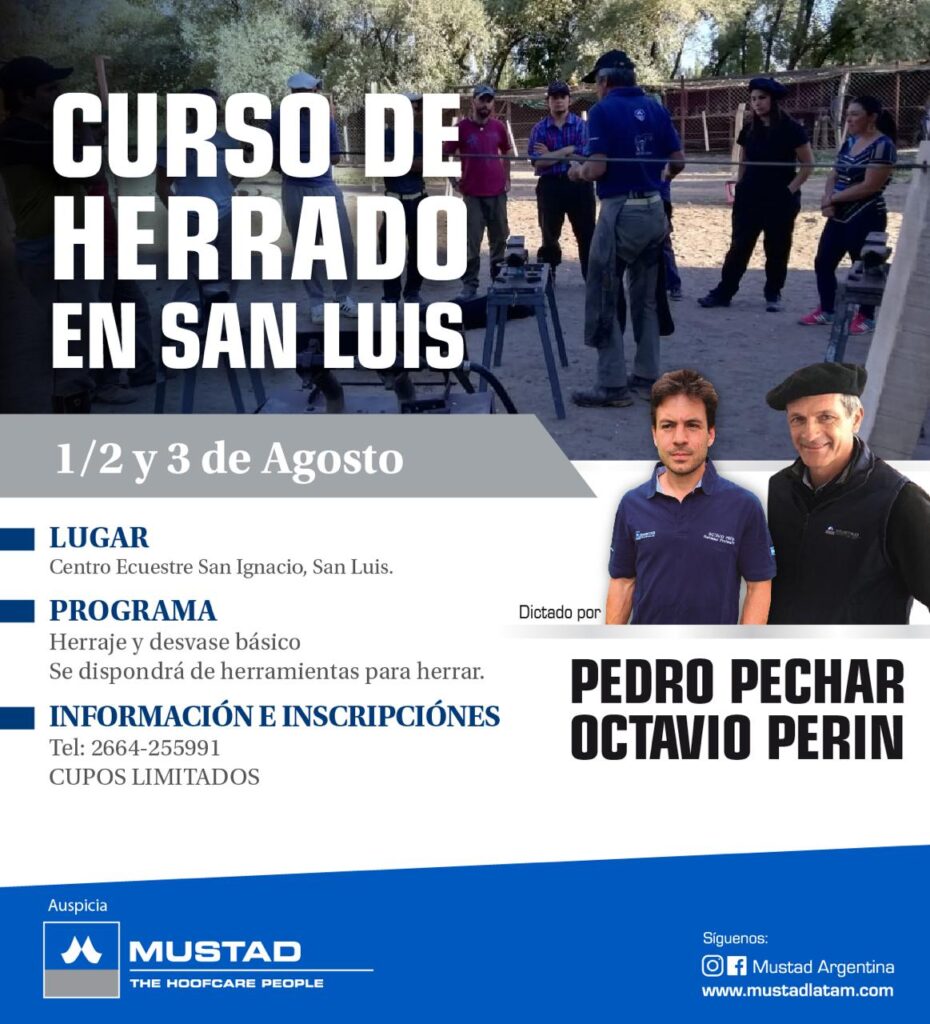 El curso será dictado por los reconocidos herradores Pedro Pechar y Octavio Perín, y cuenta con el auspicio de Mustad Latam Argentina, empresa líder en herramientas y productos para herrado profesional. Durante las tres jornadas se dispondrá de herramientas específicas para la práctica, lo que permitirá a los asistentes adquirir conocimientos teóricos y habilidades prácticas esenciales.