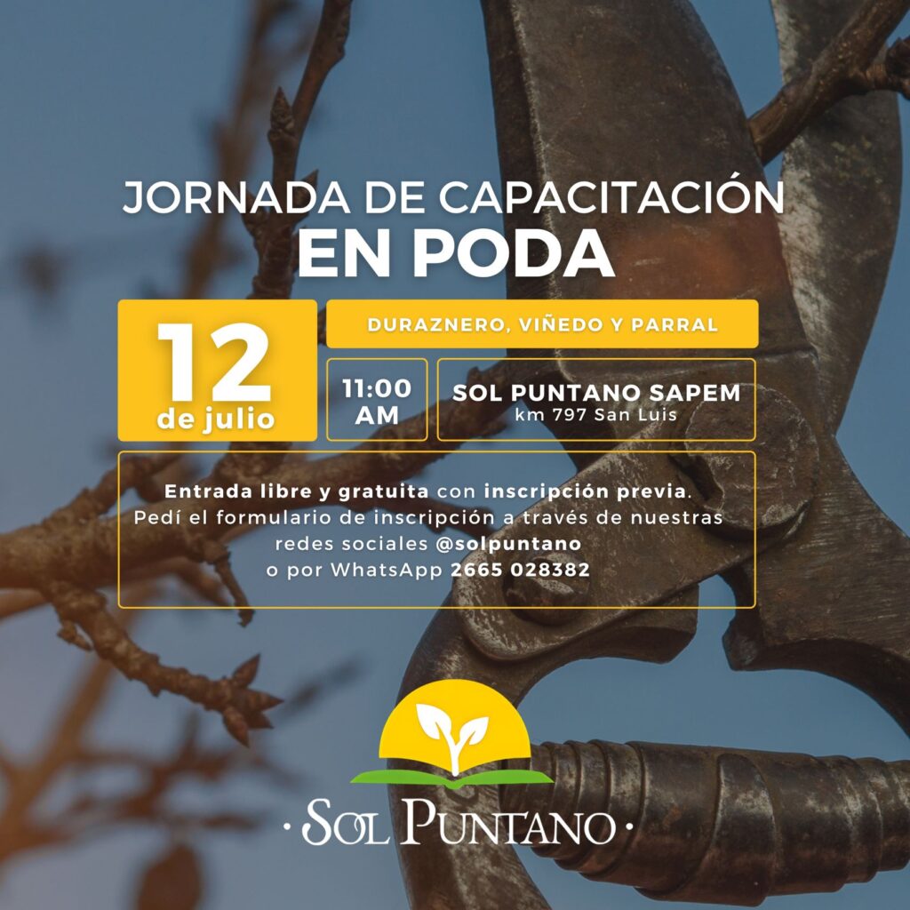 En el marco de su compromiso con el desarrollo productivo y la promoción de prácticas agrícolas sostenibles, Sol Puntano SAPEM anunció la realización de una capacitación gratuita en poda de frutales, destinada a productores, técnicos, emprendedores y público en general. La actividad se llevará a cabo el próximo sábado 12 de julio, de 11:00 a 16:00, en el predio ubicado sobre la Autopista de las Serranías Puntanas, camino a Mendoza.