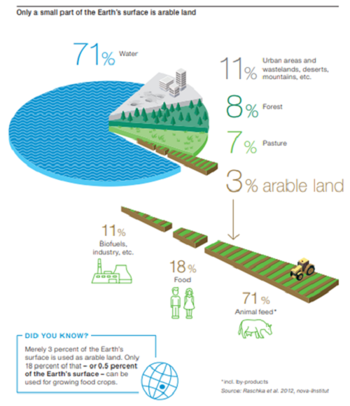 La carne cultivada requeriría menos recursos naturales que la tradicional. Necesita menos tierras, menos de agua y genera un porcentaje menor de emisiones de gases de efecto invernadero respecto a la ganadería tradicional. Actualmente, solo un 3% de la superficie terrestre es arable y dentro de esa poca proporción, un 71% se usa para alimentar animales y un 18% para alimentar directamente a personas y el resto para bioenergía. Toda tecnología que apunte a eficientizar los recursos naturales en la producción de alimentos es de suma importancia.