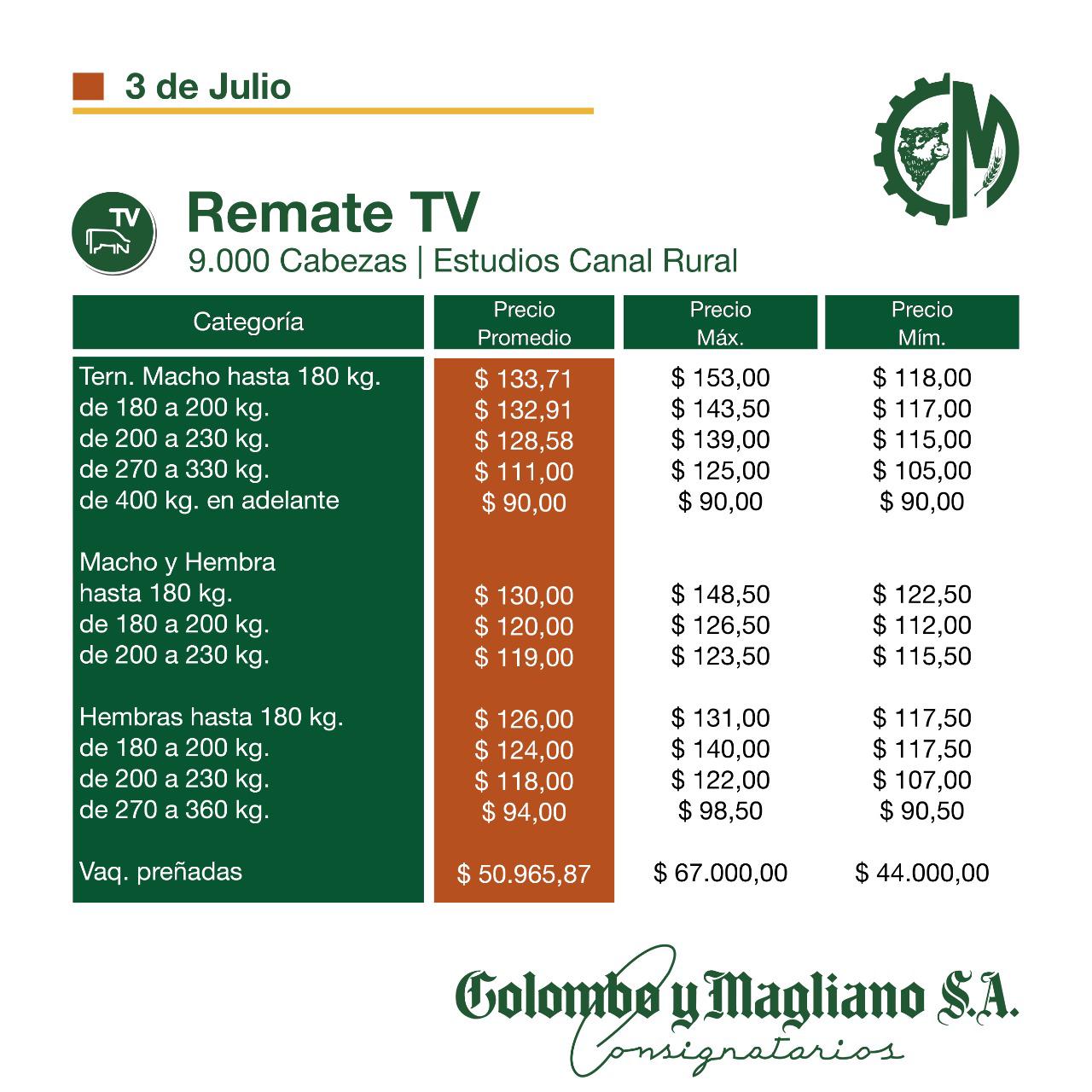 El viernes volvieron los remates de Colombo y Magliano por televisión. Salieron 9000 vacunos al ruedo digital y fueron comercializados en su totalidad. La coordinación de la subasta estuvo a cargo del rematador oficial de la casa, Juan Pedro Colombo.