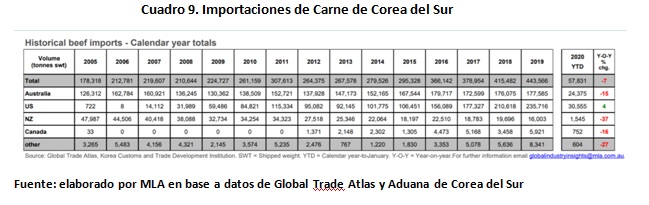 Con respecto a los proveedores de carne vacuna a Corea del Sur y al igual que en el caso de Japón, Estados Unidos y Australia con los principales proveedores.