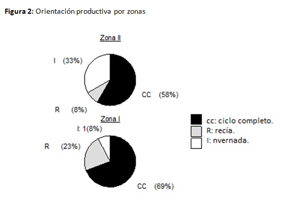 Zona II: sigue siendo mayor el porcentaje que realizan CC, pero la invernada es la más alta de la zonas, comprando novillitos, a los cuales se los termina con encierres a corral (Fig.2).