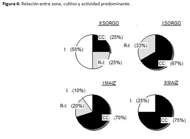 En la figura 4 se muestra la interacción entre cultivo y su uso. Se constata una tendencia de silaje de sorgo doble propósito para terminación del ciclo completo en la zona I. En cambio, en la zona II, los sorgos de mayor uso son los forrajeros azucarados y BMR para invernada.