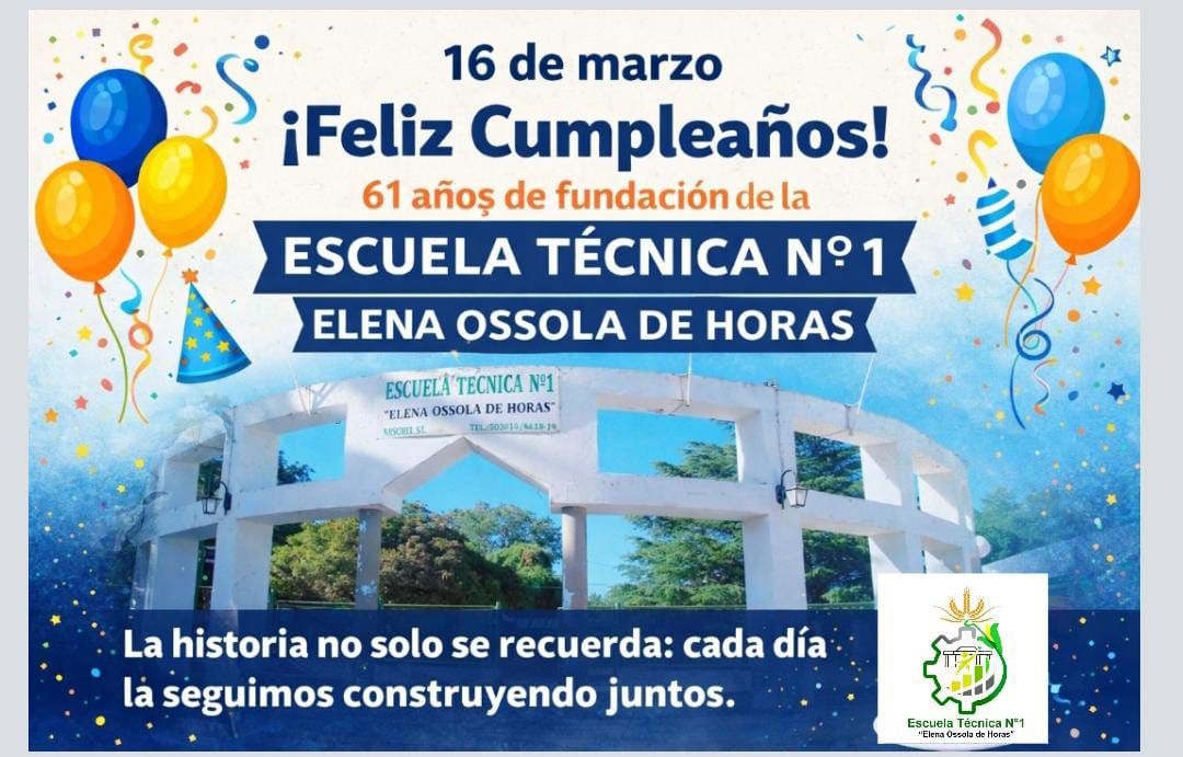 La comunidad educativa de la Escuela Técnica N° 1 “Elena Ossola de Horas”, de Naschel, celebró sus 61 años de vida con una historia atravesada por el compromiso, la transformación y una fuerte identidad construida generación tras generación.