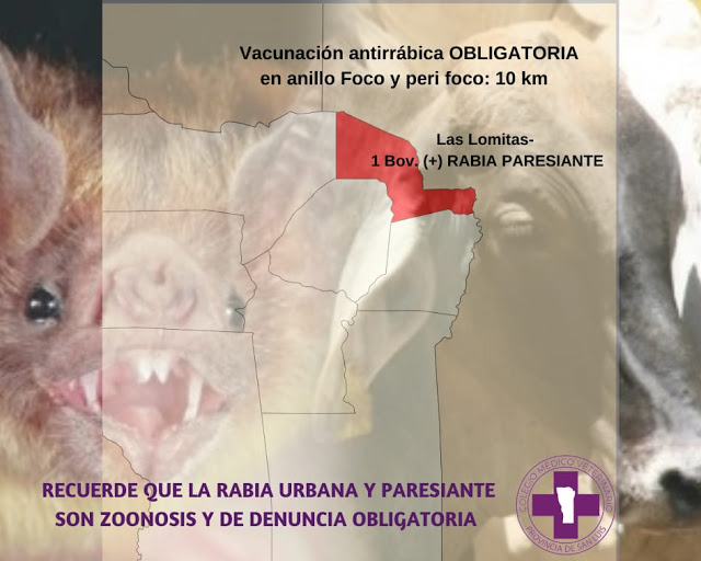 Tras la detección de un bovino positivo a la rabia paresiante, en el paraje “La Lomita” en el departamento Junín, San Luis, el Servicio Nacional de Sanidad y Calidad Agroalimentaria (Senasa) y los ministerios de Producción y de Salud de esa Provincia acordaron afianzar las acciones conjuntas contra la enfermedad.