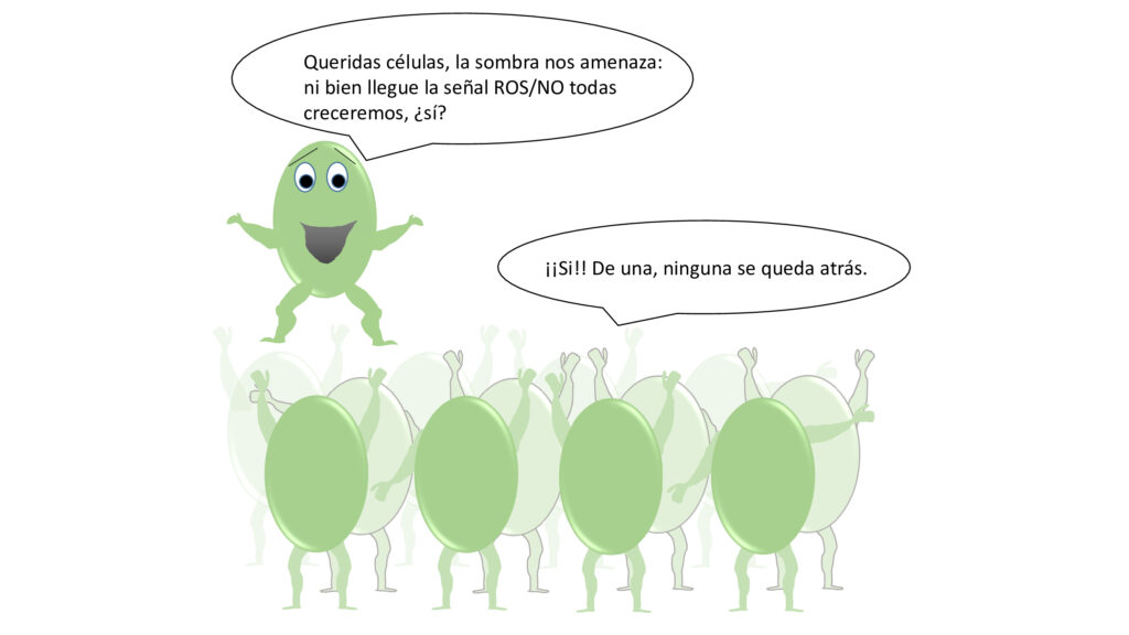 “Efectivamente –continuó Casal–, las señales ROS/NO disminuyen en el follaje de las plantas expuestas a sombra, pero nos llevamos una sorpresa al ver que en el tallo ocurría lo contrario: a pesar de la sombra, había más señales ROS/NO”. Según el investigador del CONICET, esto los llevó inmediatamente a preguntarse cómo se generan estos incrementos y si cumplen alguna función.