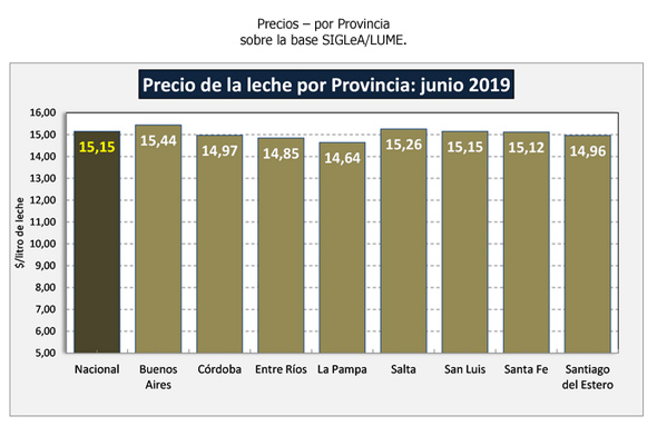 Según el SIGLeA (Sistema Integrado de Gestión de la Lechería Argentina), que analizó las compras de leche cruda realizadas por 314 industrias lácteas y 8.287 tambos, el precio promedio del litro de leche pagado al productor a nivel nacional fue en Junio de $15,15.