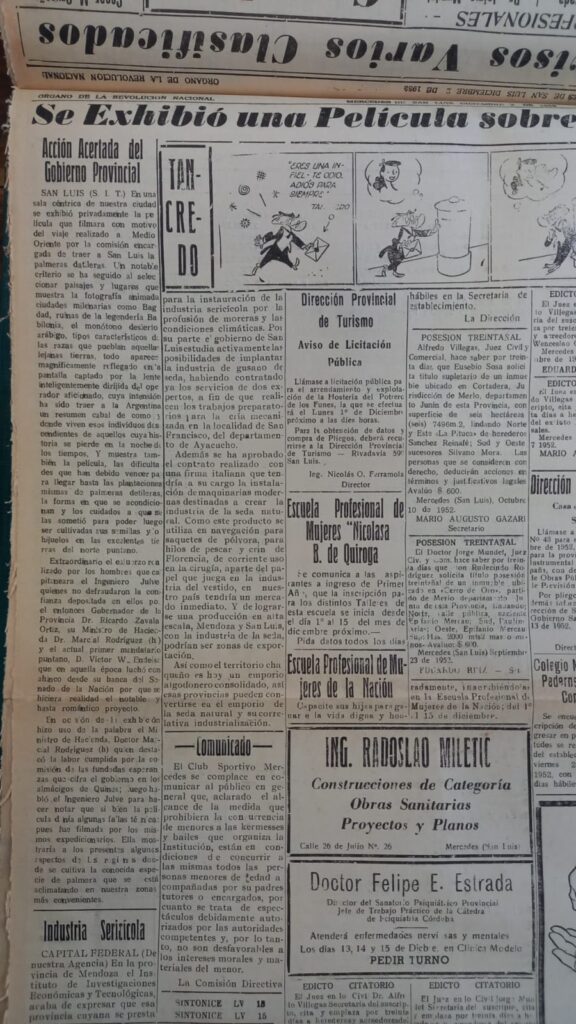 Diario El Centinela, Villa Mercedes, San Luis , 2 de Diciembre de 1952.