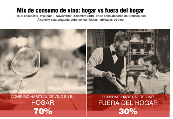El 30% del consumo total de vinos en la Argentina se da en espacios de “botella abierta”, en este canal la caída de ventas ha sido estrepitosa llegando prácticamente a ser nula, ya que el consumo de vino es propiamente en el restaurante y no hay delivery de vino junto con la comida.