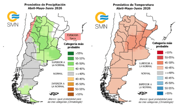 El pronóstico climático trimestral del Servicio Meteorológico Nacional (SMN) anticipa que durante el período abril-junio de 2026 se registrarán lluvias superiores a lo normal en varias zonas del país, incluyendo el este de San Luis. Sin embargo, en gran parte de la región de Cuyo se esperan precipitaciones dentro de los valores normales, aunque con temperaturas entre normales y superiores a lo habitual.