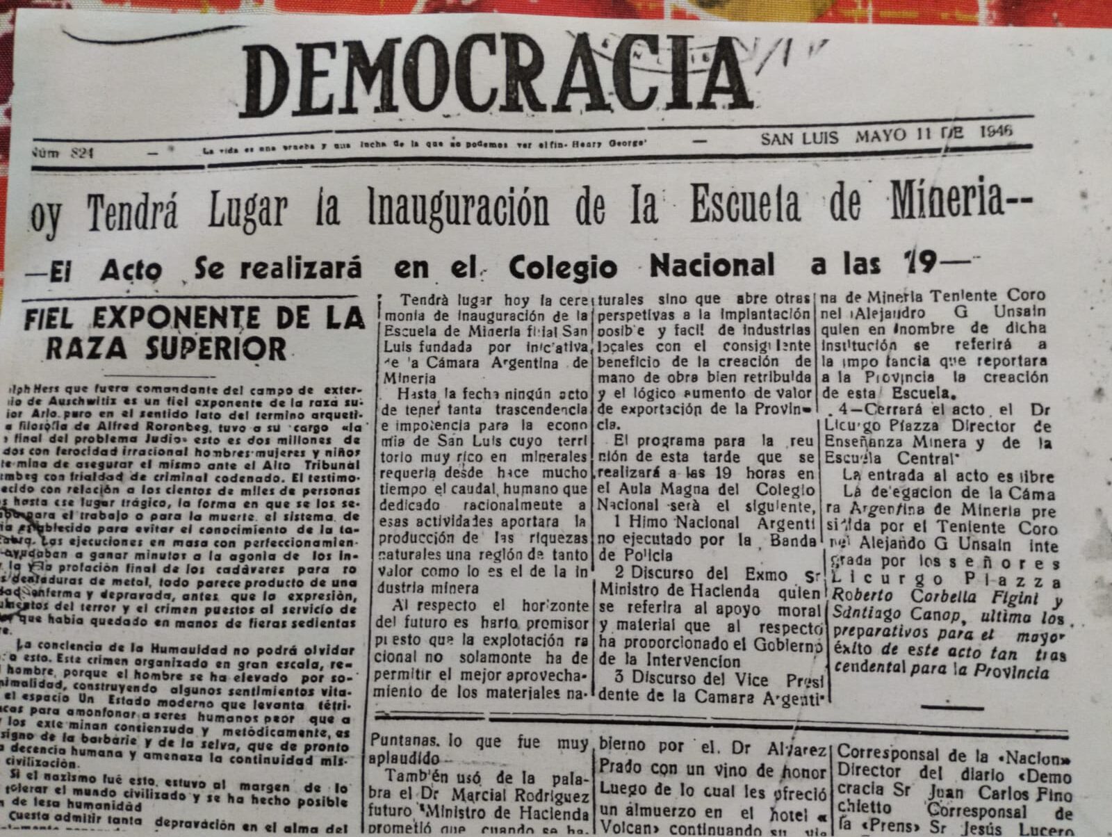 El diagnóstico de 1946 era contundente, sin capital humano capacitado, la riqueza del subsuelo no podía traducirse en progreso sostenido, según se desprende del artículo publicado el 11 de mayo de 1946 por el diario Democracia.