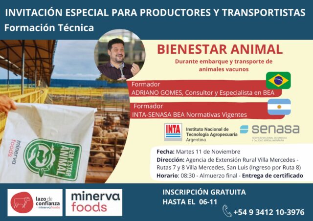 En el marco de una creciente conciencia sobre la importancia del trato ético hacia los animales y la sostenibilidad de la producción ganadera, se llevará a cabo una Jornada de Formación Técnica en Bienestar Animal, una propuesta que reúne a instituciones de referencia en el ámbito agropecuario. La actividad es organizada de manera conjunta por el INTA, la empresa Minerva Foods y el SENASA, y tendrá lugar en la Agencia de Extensión Rural Villa Mercedes, dependiente de la Estación Experimental Agropecuaria (EEA) San Luis del INTA.