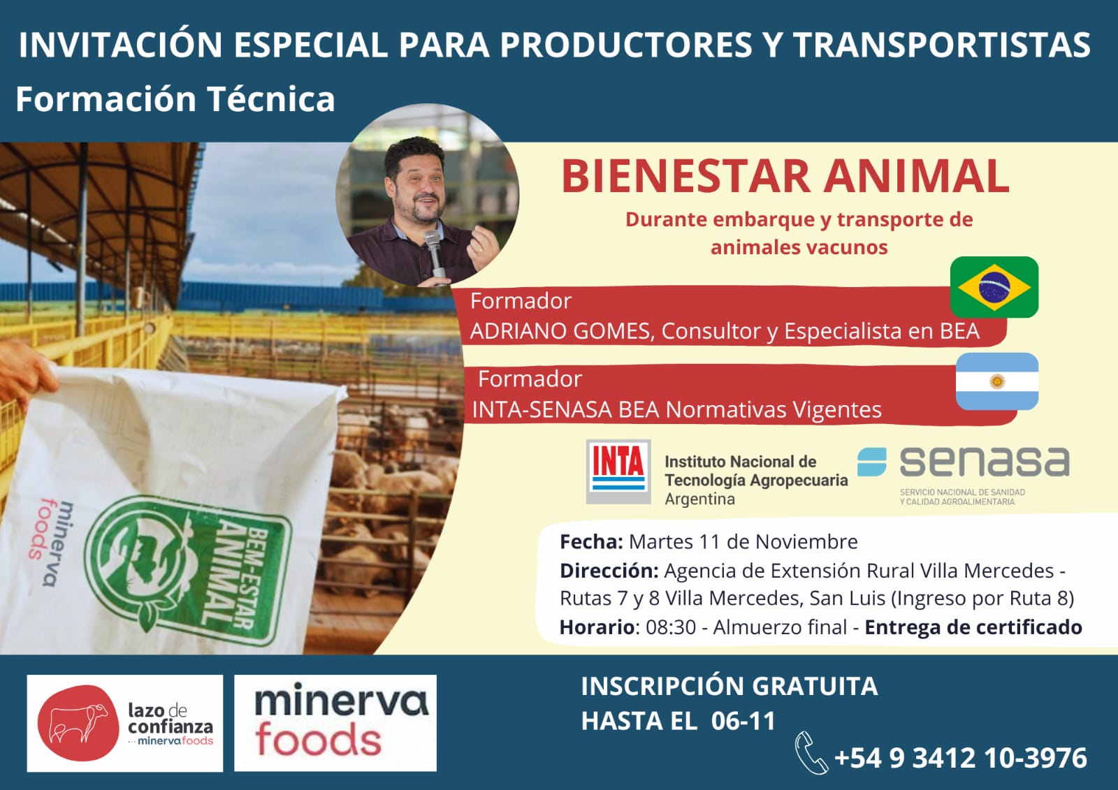 Uno de los puntos destacados de la jornada será la participación del especialista Adriano Gomes, quien llega desde Brasil para compartir su amplia experiencia en manejo racional en corrales y en la implementación de estándares internacionales de bienestar animal. Su exposición abordará los desafíos actuales del sector en materia de eficiencia productiva, reducción del estrés animal y mejora de las condiciones de manejo, aspectos que hoy son claves tanto para la competitividad como para la sustentabilidad de los sistemas ganaderos.