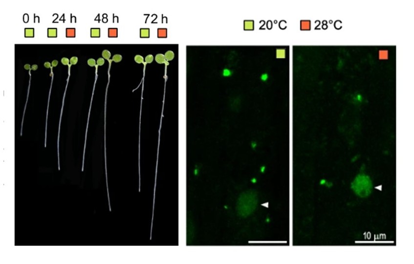 Por otra parte, el trabajo del grupo estadounidense dirigido por Lucia Strader y encabezado por Edward Wilkinson y Katelyn Sageman-Furnas, de la Universidad de Duke y el Instituto Salk, respectivamente, demostró que con altas temperaturas hay una mayor estabilidad de las proteínas ARF7 y ARF19, lo que permite que la planta responda con más fuerza al calor.