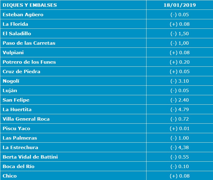 Después de las lluvias registradas esta semana, San Luis Agua actualizó el nivel de cotas de los diques de la provincia: