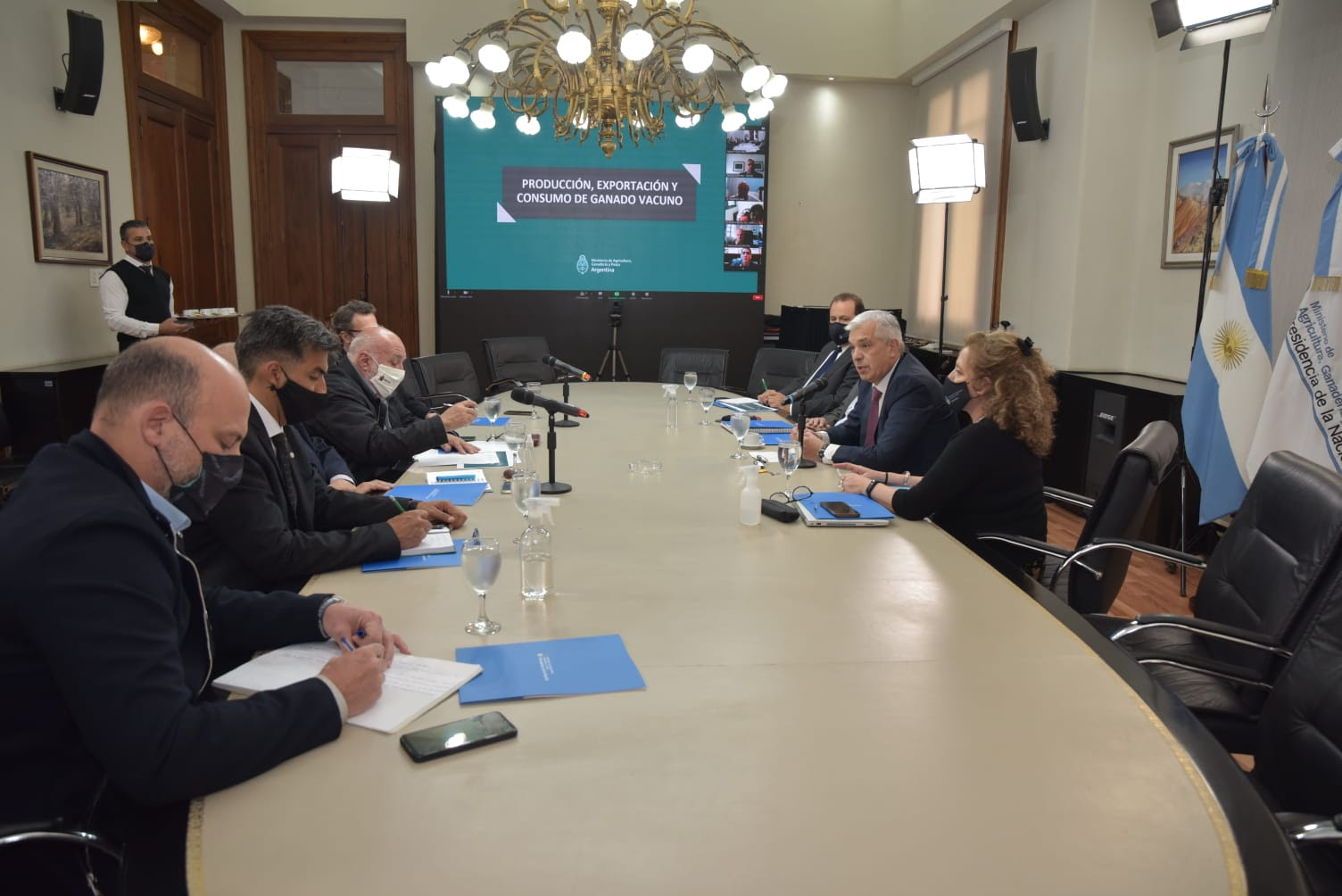 El ministro de Agricultura, Ganadería y Pesca de la Nación, Julián Domínguez, se reunió esta tarde de forma presencial y virtual junto con rectores y decanos de trece universidades y facultades públicas de Ciencias Veterinarias.