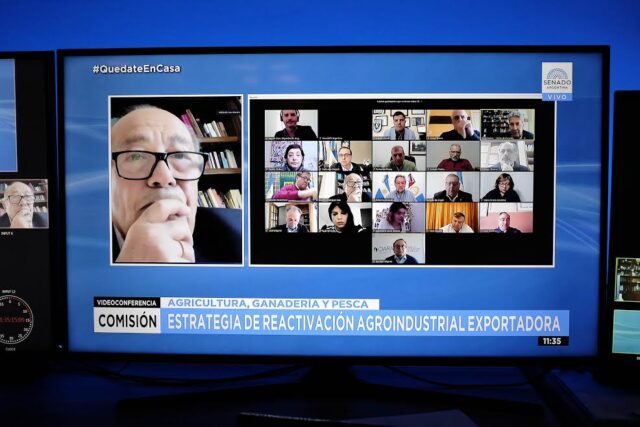 El presidente de la Comisión de Agricultura, Adolfo Rodríguez Saa, encabezó la reunión conjunta de los legisladores e integrantes que asistieron, de forma virtual, en representación del Consejo Agroindustrial Argentino, quienes presentaron la “Estrategia de Reactivación Agroindustrial Exportadora Inclusiva, Sustentable y Federal” y tomaron nota de las preguntas de los senadores.