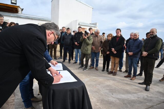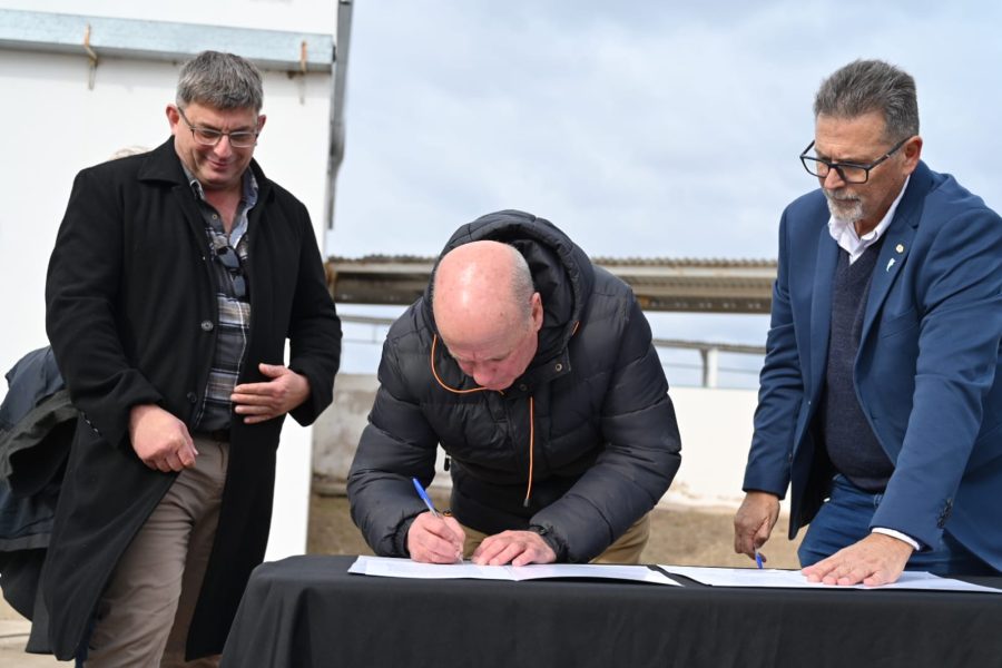 El contrato de concesión fue firmado por Daniel Boiero, presidente de Sol Puntano, y los socios de Agroganadera El Algarrobo SAS: Juan Carlos Martínez, Sergio Saláfrica y Carlos Marconi. Junto al gobernador recorrieron las instalaciones y presentaron los lineamientos del proyecto, que en una primera etapa prevé la creación de 20 a 25 puestos de trabajo, con la posibilidad de ampliarse hasta 50 empleos directos, además de los indirectos vinculados a la cadena productiva: transporte, fletes, cría de ganado y servicios asociados.