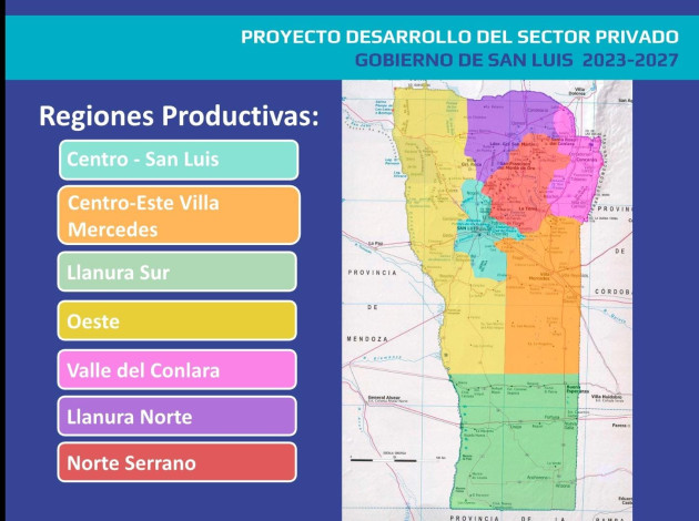 El mapa productivo está dividido en siete regiones que abarcan toda la geografía de San Luis. En febrero, ya hay un cronograma para que comiencen a reunirse las mesas de trabajo público-privadas para comenzar a delinear la tarea conjunta de alentar la producción, lo que va a mejorar la calidad de vida de todos, porque producir en casa significa más trabajo, más divisas, más intercambios para movilizar la economía. El primer encuentro será el 3 de febrero en la región Llanura Sur.