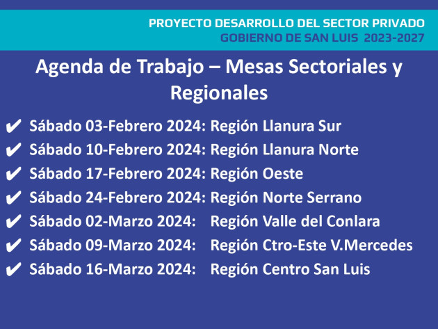 “Se pone en marcha para articular, en primer lugar, al sector público y al sector privado y de esta forma «poder identificar las necesidades, las problemáticas y las oportunidades y juntos; el sector público y privado, empresarios, comerciantes y toda la cadena productiva de San Luis; definir las acciones a realizar, las solucionas a dar para ponerlas en marcha, juntos”.