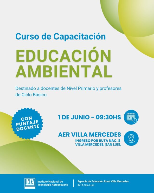 Este curso constará de 4 encuentros presenciales que se dictarán en la Estación Experimental del INTA en Villa Mercedes y se otorgará puntaje docente a quienes participen.