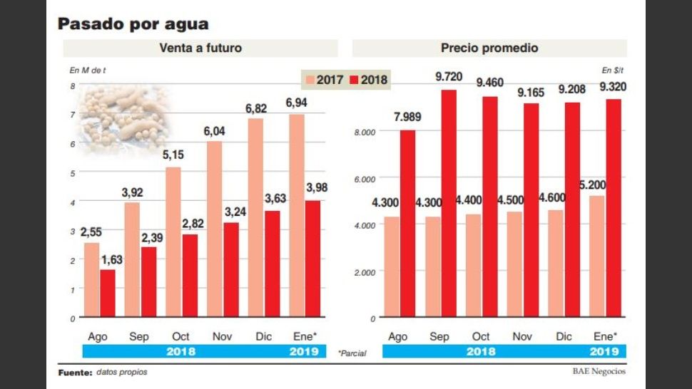 El productor sabe de esto y sigue mirando desde abajo del escenario. Datos de Agroindustria señalan que los contratos a futuro de la soja presentan una merma del 42,6 por ciento. Hasta el 9 de enero la oleaginosa comprometida a entregar es de 3,98 millones de toneladas, mientras que en 2018, pese a la sequía, era de 6,94 millones.