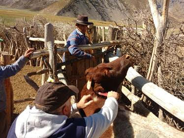 Dos médicos veterinarios del Servicio Nacional de Sanidad y Calidad Agroalimentaria recorrieron diferentes puestos ubicados en la Pre Cordillera de los Andes, durante 5 días, para identificar con caravanas y vacunar a más de 600 bovinos. Para dicha tarea contaron con la colaboración de un profesional de la Fundación Coprosamen y de los propios puesteros.