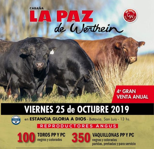 La cita será en la estancia «Gloria a Dios» cerca de la localidad de Batavia, al sur de San Luis. El viernes 25 a partir de las 13 comenzará el remate de la cabaña La Paz, de Werthein, para subastar la cuarta venta anual de reproductores Angus.