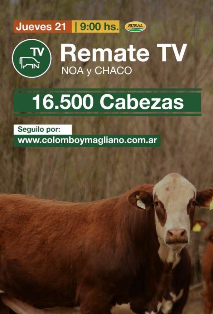 Hoy jueves 21, a partir de las 9 de la mañana, por el canal Rural y el sitio web de la empresa, Colombo y Magliano realizará un remate de 16.500 cabezas. Lleva la denominación de NOA y Chaco.
