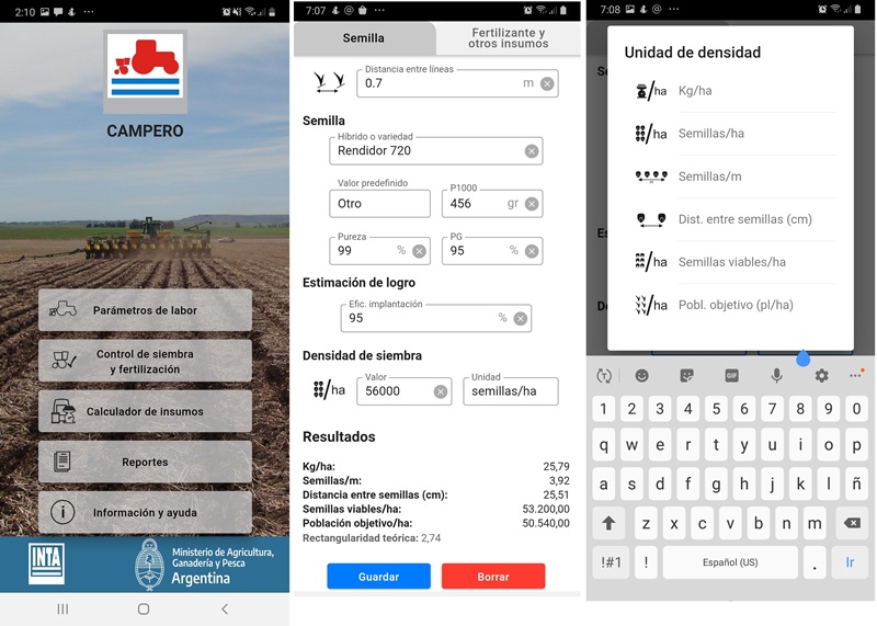 Se trata de Campero, una aplicación desarrollada por el INTA, que permite calcular los principales parámetros de operación y prestaciones de cualquier tipo de sembradoras. Es gratuita y está disponible para dispositivos móviles con Android.