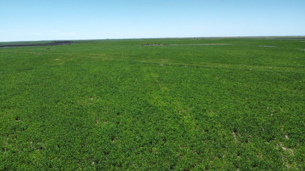 En la campaña 24-25 sembró 1.800 hectáreas de maíz para cosecha, 1.300 de maíz para consumo animal, 1.120 de soja, 611 de sésamo, 40 de chía, 400 de poroto mung, y bueno, 2.700 con centeno para pasto y cosecha, y unas 3.000 para cobertura.