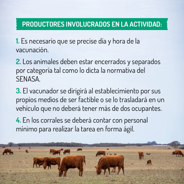 El presidente de la COPROSA destacó que se vacunarán aproximadamente 700 mil animales. “Solamente involucra a las categorías menores, es una estrategia que tiene la provincia. En la primera etapa se vacunó a todas las categorías”, mencionó Cheratto y agregó que también se vacunará a las terneras que tienen entre tres y ocho meses contra la brucelosis.