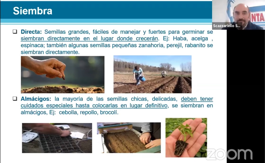 Sergio Scazzariello, ingeniero agrónomo integrante del equipo de INTA de San Luis cuyo trabajo lo centraliza en Villa Mercedes, coordinó ayer la primera de una serie de tres capacitaciones on line referidas al trabajo en la huerta. La exposición estuvo centrada en «Cómo hacer la huerta otoño – invierno».