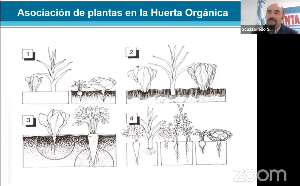 La costumbre de quienes observamos sus charlas es estar en una sala donde Sergio hace su despliegue de información referida a la actividad hortícola, acompañado por plantines, semillas, flores, raíces, aromáticas, etc. Ayer fue distinto porque ese despliegue no lo puede hacer on line si no está filmado previamente. Pero a lo largo de la casi hora y media que se extendió la capacitación, la atención de los aproximadamente 200 participantes se mantuvo permanente.